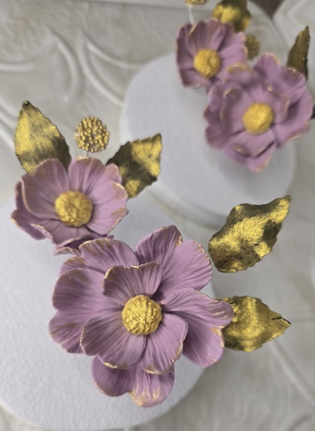 Dekoracija perla lila zlatno cvijeće 2/1